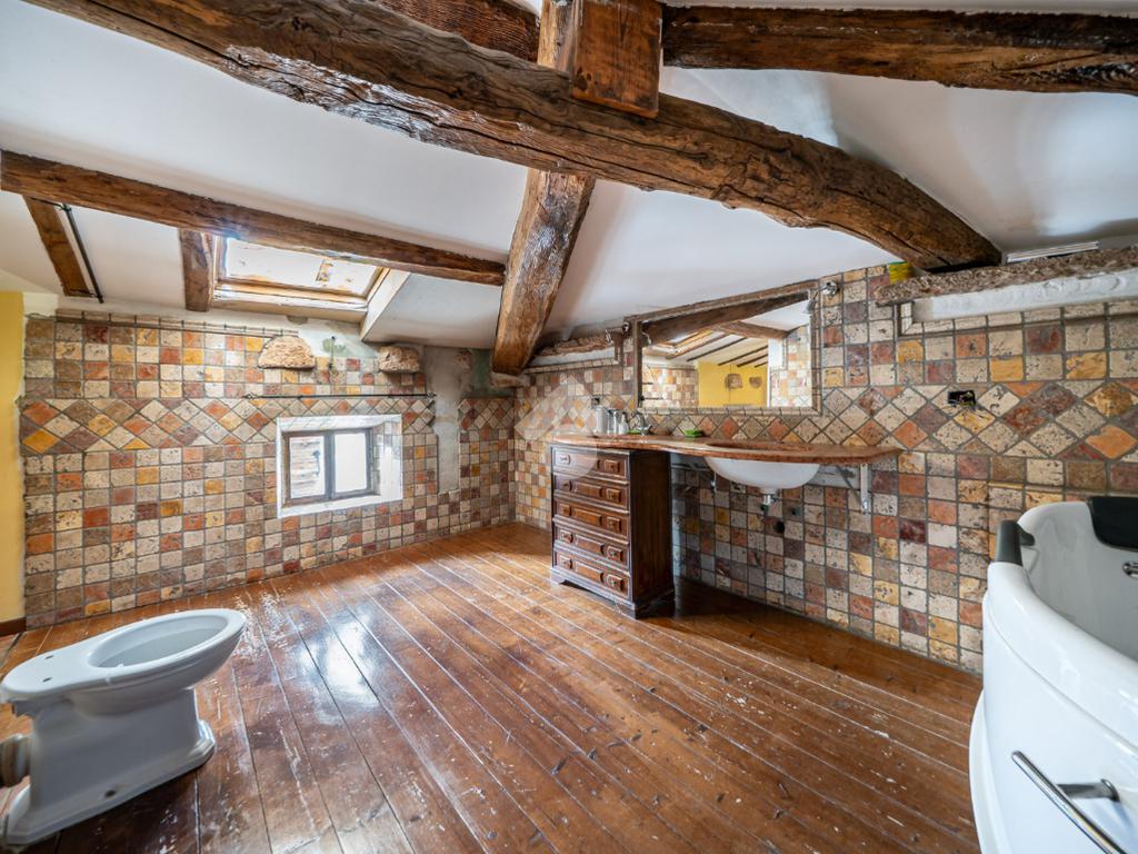 al piano terra troviamo una zona giorno con cucina e soggiorno. Salendo al primo piano si accede a una camera da letto, una zona disimpegno e un bagno. Il secondo piano ospita una camera matrimoniale e due ulteriori stanze utili come studi o guardaroba. L’ultimo piano presenta una soffitta adibita a camera matrimoniale con bagno con vasca idromassaggio.