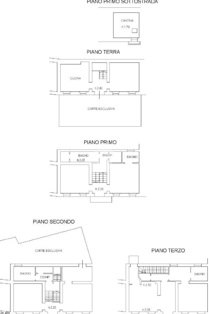L'immobile è composto da più soluzioni abitative; dall'ultimo livello troviamo un appartamento bilocale composto da: soggiorno-cucina con accesso diretto al balone, camera da letto e servizio finestrato; dalla zona giorno è possibile accedere alla spaziosa corte sul retro.